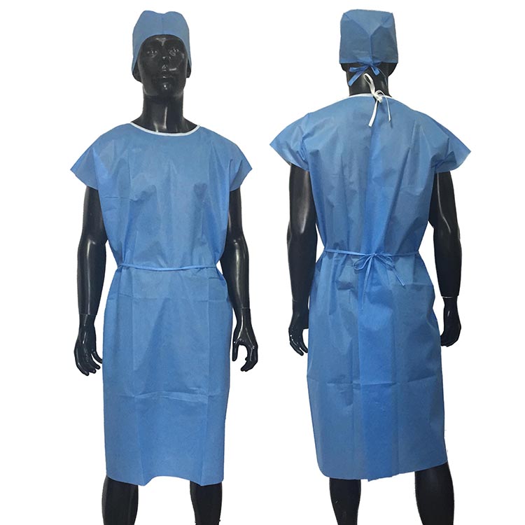 Wegwerp patiëntjas kan worden gebruikt voor ziekenhuizen, laboratoria, stofvrije werkplaatsen, voedingsindustrie, elektronische fabrikanten. Het wordt veel gebruikt in het ziekenhuis als onderzoeksjas voor patiënten, het eenvoudige ontwerp kan gemakkelijk worden gedragen en verwijderd. Het kan de drager beschermen om een schone omgeving te behouden en biedt ook privacybescherming.