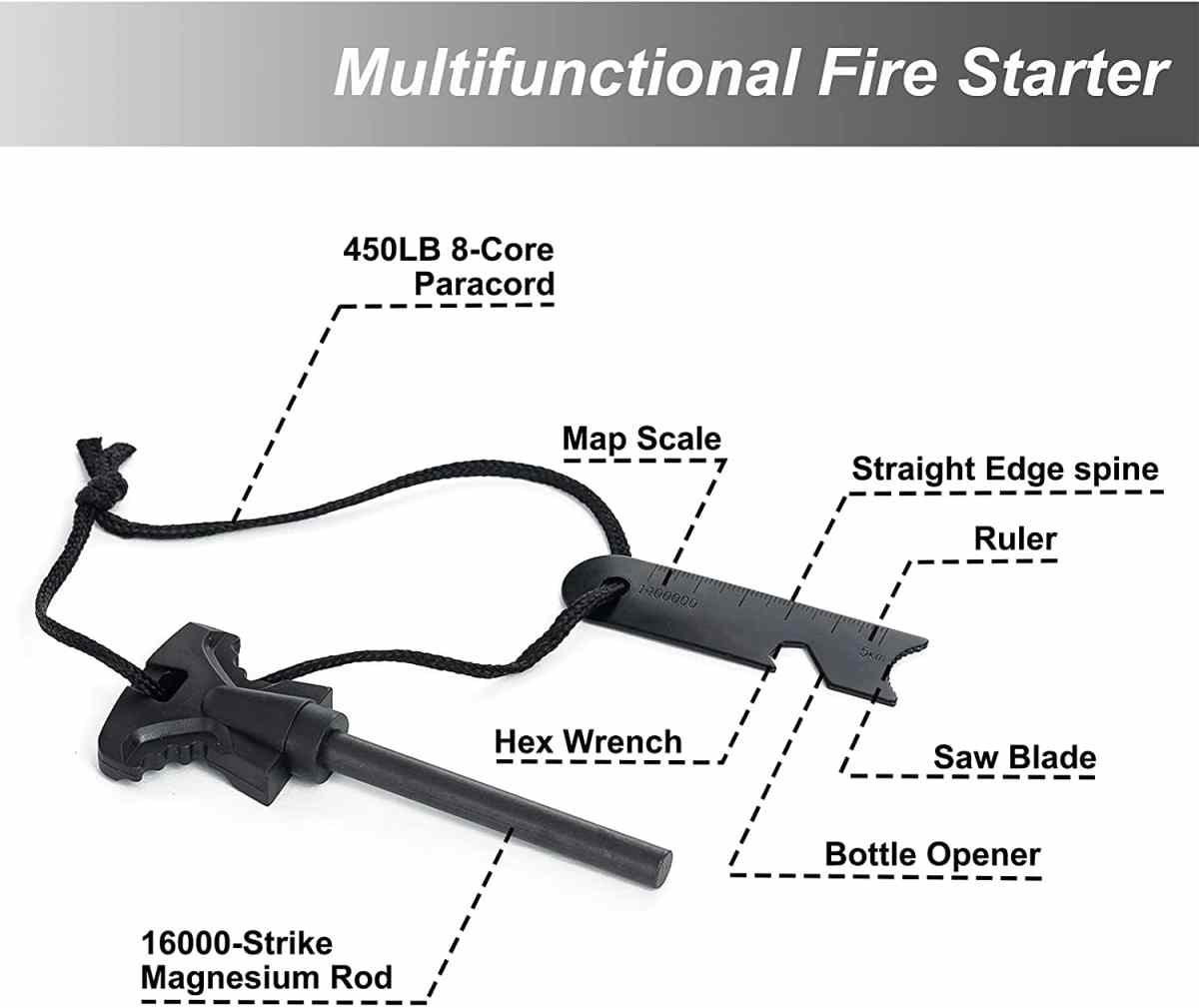 Handig en draagbaar - Tactische zaklamp, tactische pen, armband, kompas, fluitje, tactisch mes, enz., zijn gemaakt van hoogwaardig materiaal en bieden uitstekende veiligheid en duurzaamheid, voldoen aan nood- en medische behoeften, waardoor uw kamperen, overleven in de wildernis of wandelen mogelijk wordt reizen eenvoudiger en handiger, zonder dat u zich zorgen hoeft te maken dat u verdwaalt